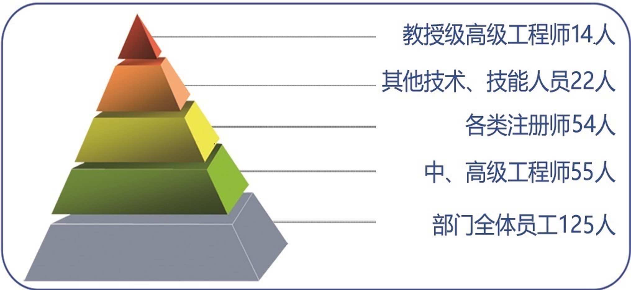 岩土工程公司是一支工程经验丰富、设备优良、技术精湛、服务优质、处于行业领先水平的勘测团队。岩土工程公司现有员工125人,其中取得注册土木(岩土、水土保持)工程师、注册测绘师、一级建造师、注册造价师、注册监理师等各类注册师54人。